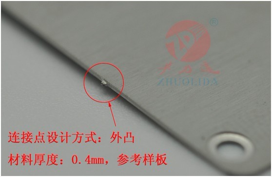 內凹試連接點設計主要是應用于功能性產品,毛刺凹于產品的邊緣,不影響產品的功能。材料的厚度不同連接點的大小也不同,材料越薄,金屬蝕刻連接點越小,材料越厚,蝕刻連接點越大!厚度在0.2mm以下的,,內凹的寬度在0.5mm,內凹的深度在0.15mm內! 一般產品都會選擇這種內凹的方式, 部分客戶還會對連接點的大小有相關要求!